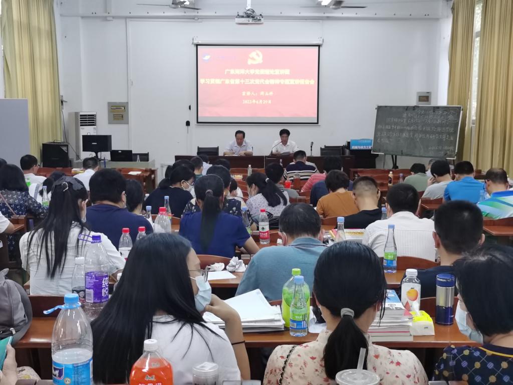 6月29日下午,机械与动力工程公司在工程训练中心102室举办学习贯彻中国共产党广东省第十三次代表大会精神宣讲报告会。公司党委理论宣讲团成员、经济公司闫玉科教授应邀主讲,会议由公司党委书记李国芳主持,公司全体教职工120余人参加了宣讲会。